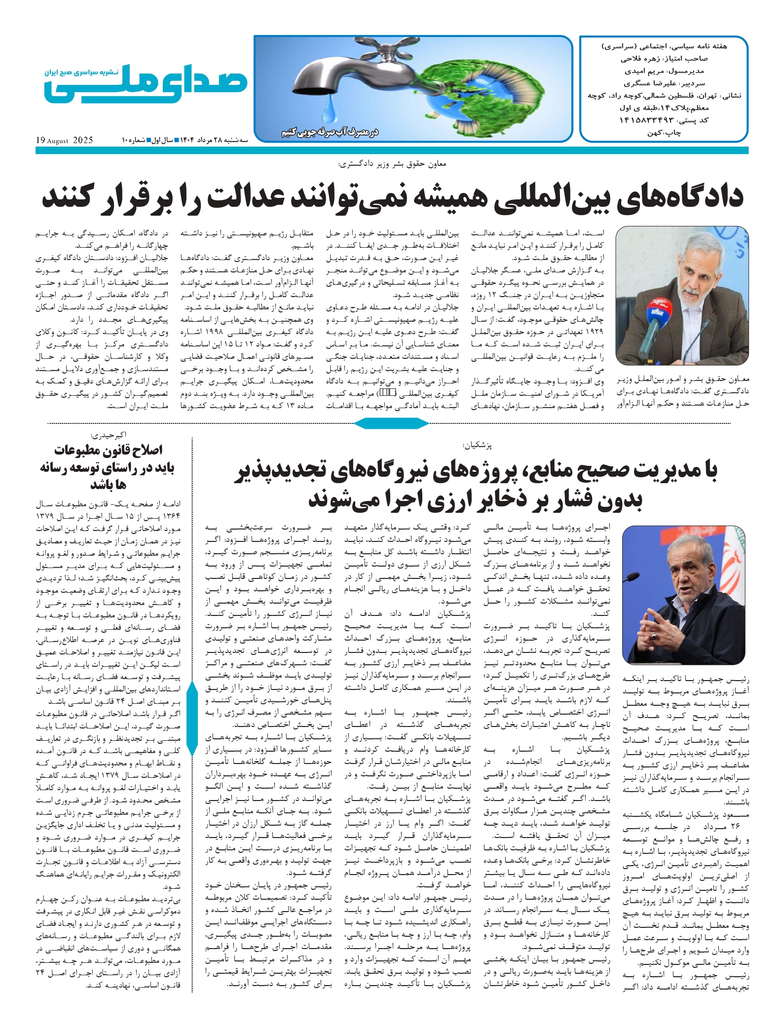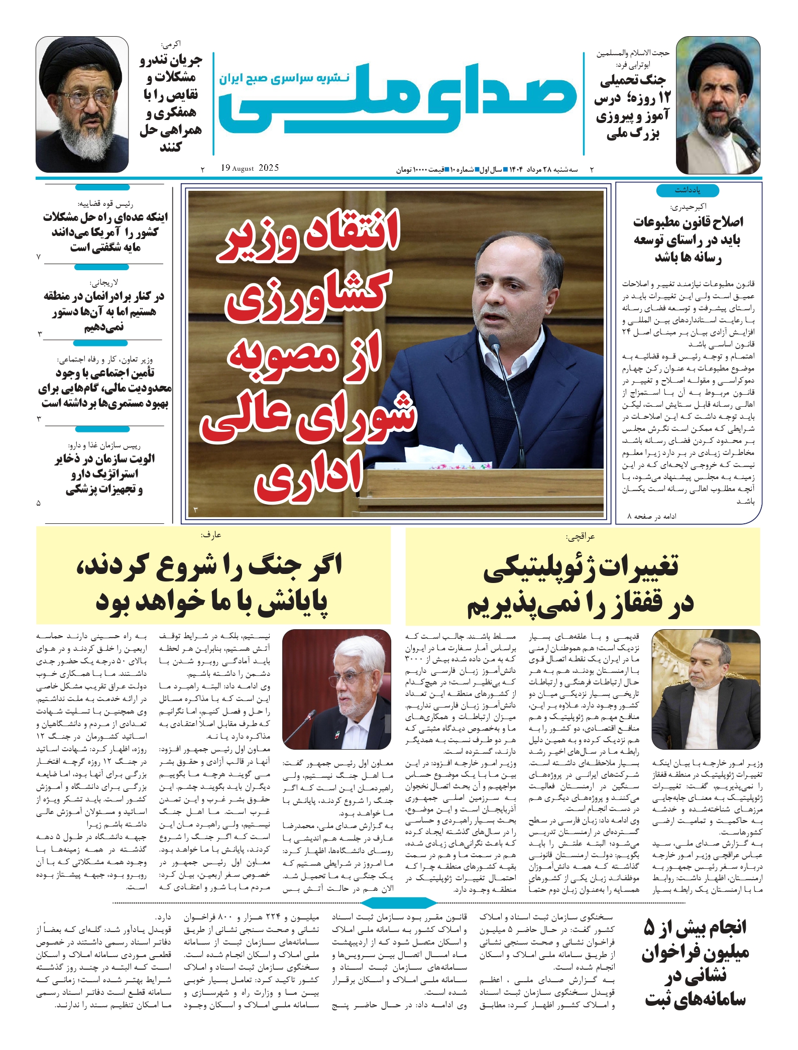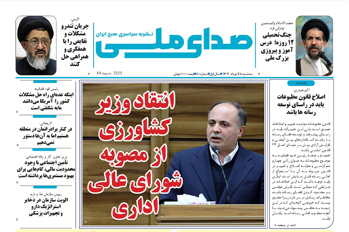 نشریه سراسری صدای ملی شماره 10 در تاریخ 28 مرداد ماه 1404 منتشر شد .