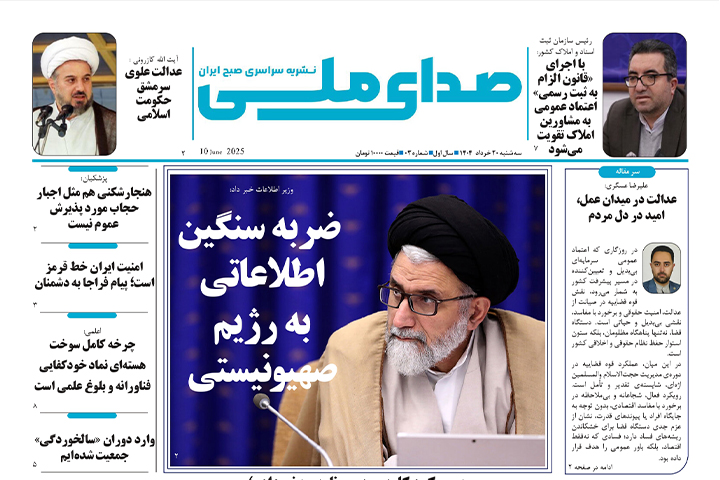 نشریه سراسری صدای ملی شماره 3 در تاریخ 20 خرداد ماه 1404 منتشر شد .
