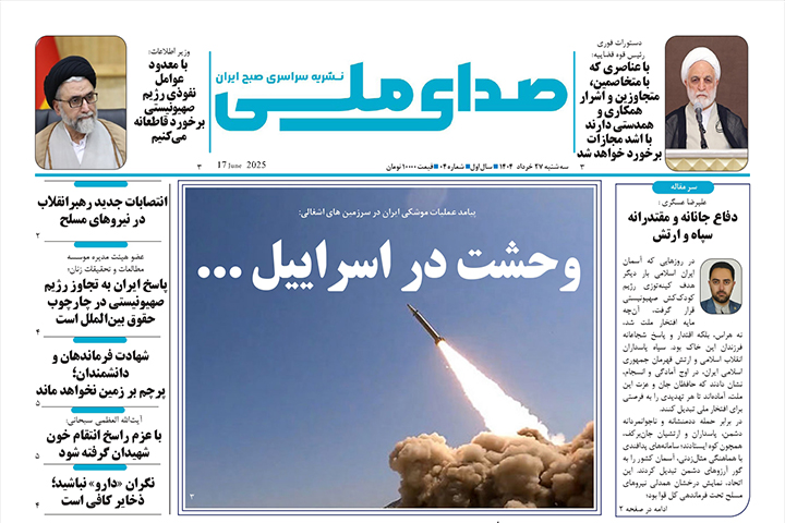 نشریه سراسری صدای ملی شماره 4 در تاریخ 27 خرداد ماه 1404 منتشر شد .